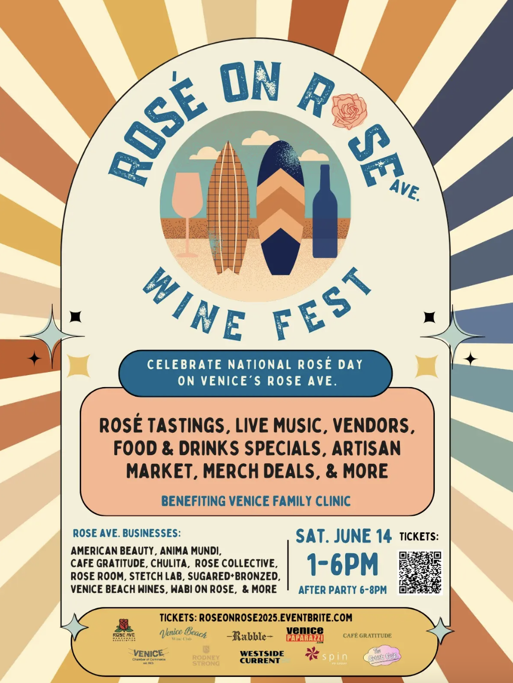 Venice is leaning all the way into summer with this one — a rosé crawl and street fest that turns Rose Ave. into a pink-hued celebration. You’ll wander from spot to spot, glass in hand, soaking up the sun, stopping for snacks, and catching live music or DJ sets along the way.